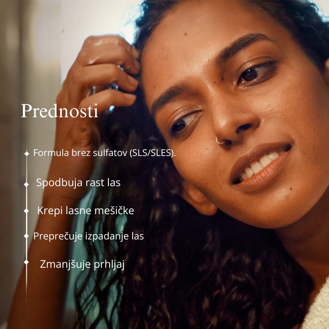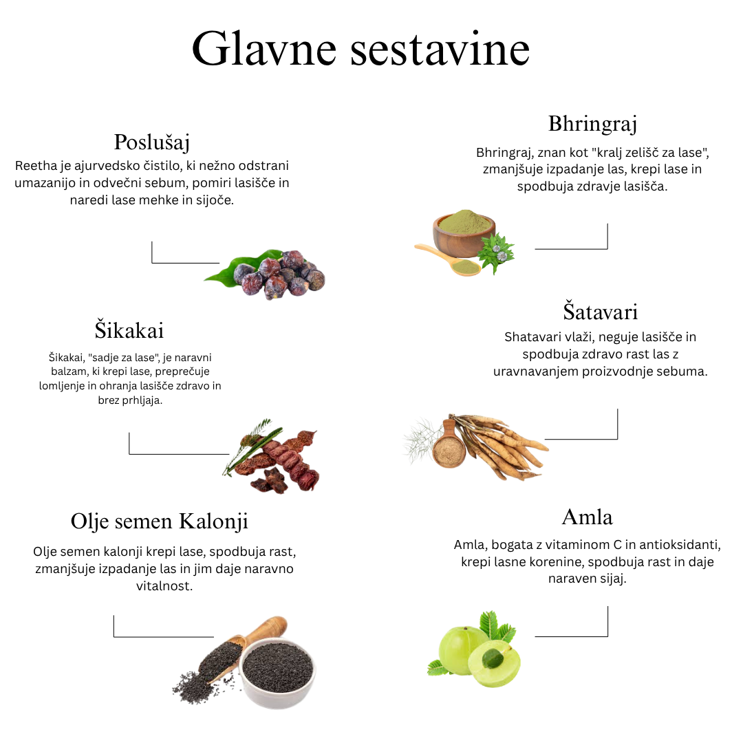 Ayurveda, 5000 let stara holistična tradicija, lasje obravnava kot odraz notranjega zdravja in ravnovesja. Ta šampon uteleša ta načela, saj uporablja najmočnejše sestavine iz narave za čiščenje, pomlajevanje in zaščito las pred škodljivimi vplivi okolja, hkrati pa ohranja njihovo naravno vitalnost..