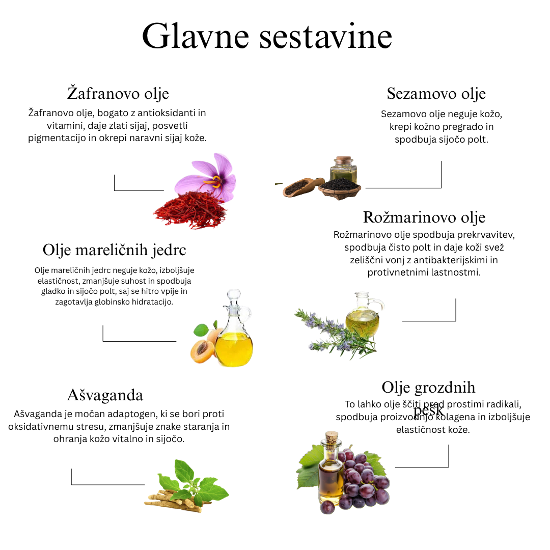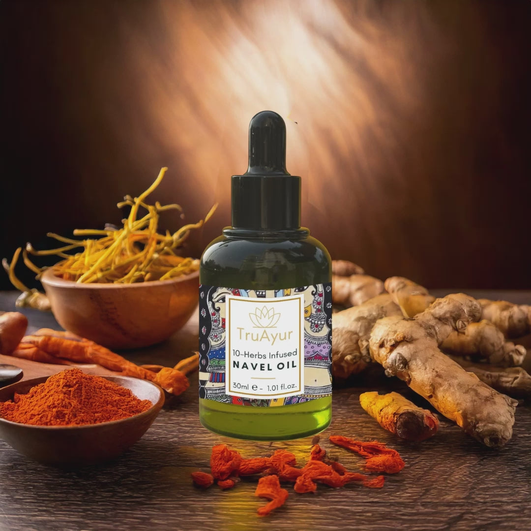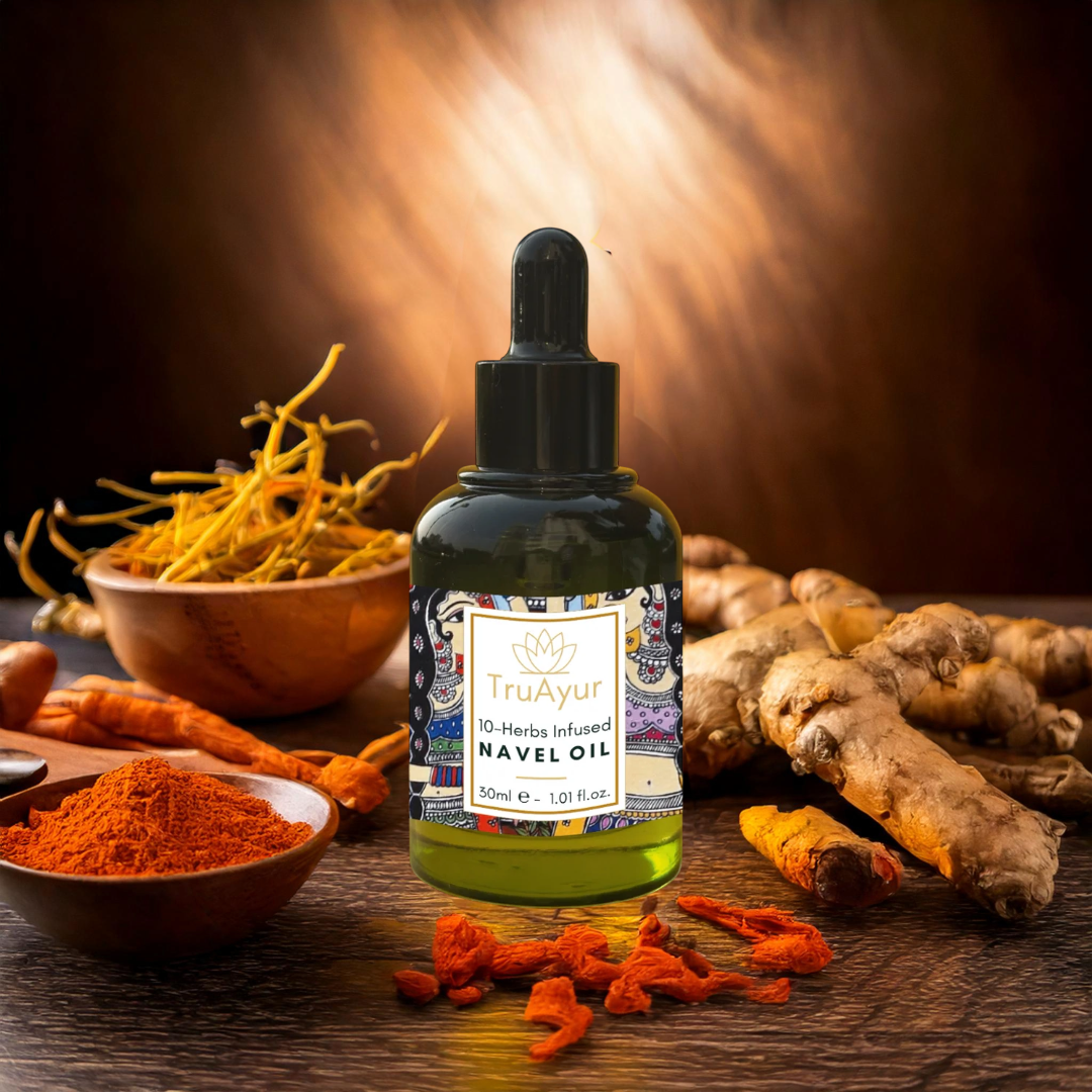 Naše olje za popek, obogateno z 10 zelišči, je razkošna in preobrazna kreacija, ki temelji na starodavni modrosti ajurvede. Ta edinstvena mešanica izkorišča moč močnih rastlinskih izvlečkov in hranljivih olj za podporo vitalnosti telesa in izboljšanje zdravja, teksture in vlažnosti kože od znotraj. Navdihnjena s 5000 let staro ajurvedsko prakso mazanja popka z oljem, ta formula združuje obnovitvene lastnosti kurkume, sladkega korena in ašvagande, da pomiri, pomladi in ponovno vzpostavi ravnovesje. Obogatena s šafranovim oljem in rožmarinovim oljem, posvetli pigmentacijo, poveča elastičnost in izboljša naravno sijaj. Dodatek hranljivih olj, kot so sladko mandljevo olje, sezamovo olje in olje iz koščic marelice, zagotavlja intenzivno vlaženje in pušča kožo gladko, mehko in sijočo. Ayurveda poudarja popek kot vitalno energijsko središče, ki povezuje um, telo in dušo. To olje uteleša ta načela, saj združuje uveljavljene rituale z modernimi inovacijami, da doseže notranje ravnovesje in vidne koristi za lepoto. Doživite revitalizacijski ritual nege s 10 zelišči obogatenim oljem za popek, ki vsak dan neguje, ščiti in izboljša vašo naravno sijajnost.